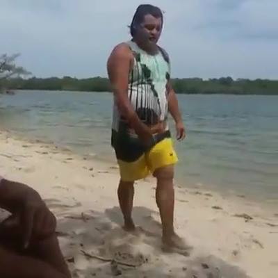 Que tal zuar seus amigos, fingindo ter fantasma na praia. Olha só o susto que o gordinho levou.